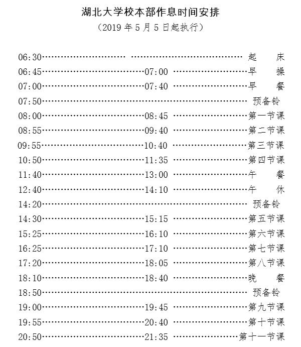 附件:湖北大學校本部作息時間安排(2019年5月5日起執行)