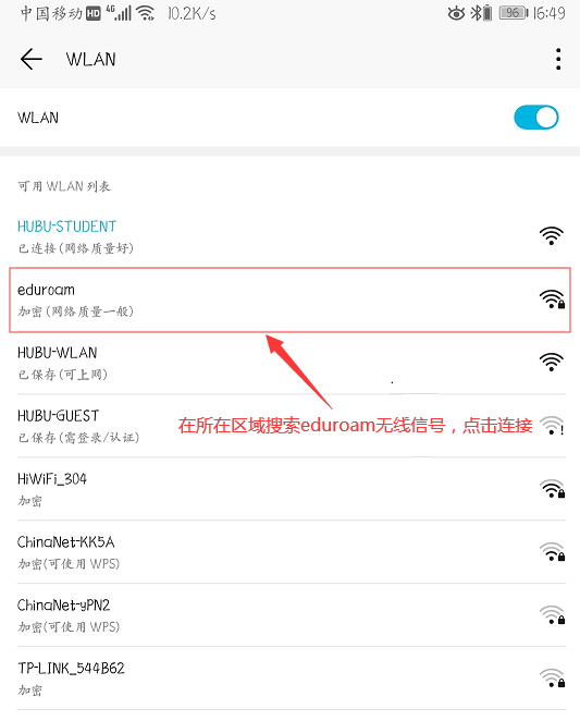 歡迎我校師生及聯盟成員使用eduroam全球無線漫游服務,技術咨詢及服務可撥打電話:(027)88662649。