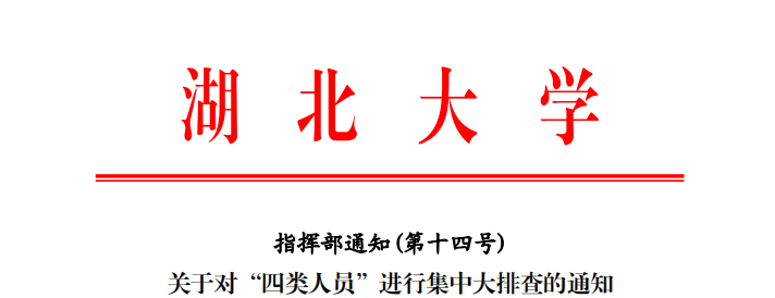 下一條:湖北大學關于進一步從嚴管理校園和生活小區的補充通知(第13號)