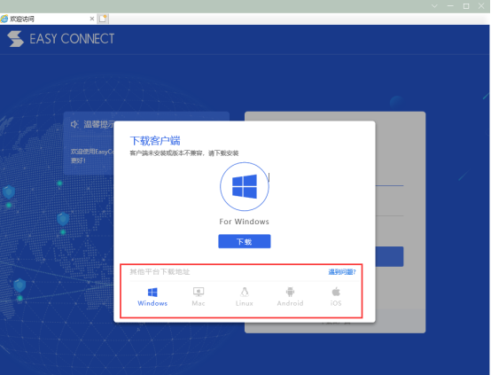 3、打開網頁后,請按照頁面提示下載安裝相應版本的VPN客戶端。