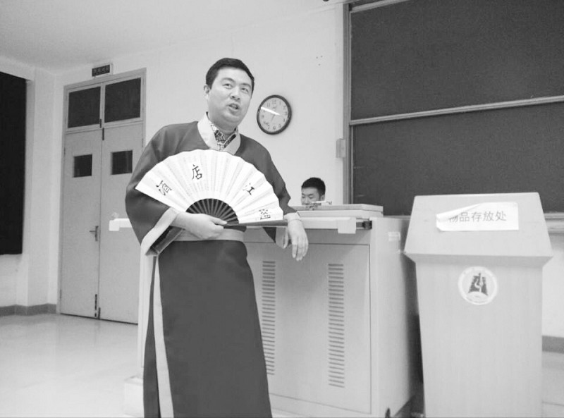說起武俠小說《笑傲江湖》,你一定并不陌生,但你可知道酒店也有自己的江湖嗎?昨日,湖北大學商學院老師趙亮道袍加身,手持寫有酒店江湖,逐鹿中原的折扇出現在旅游管理專業的課堂上,講授他的創意課——酒店江湖。課堂上,他說書論江湖,武俠形象亮相加技術體驗,大受學生追捧。