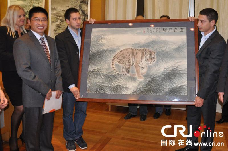 中國駐塞爾維亞大使館文化參贊徐鴻在開幕式上表示,中塞兩國文化交流源遠流長,不久前兩國又簽署了2013至2016年文化交流綱要,文化交流更是擴展到影視和體育范圍,可以說中塞兩國的文化交流在日益深化。此次畫展中的作品不僅僅是畫出虎的外形,更畫出虎的一種精神,相信此次畫展會為中塞兩國文化交流增添亮麗的一筆。