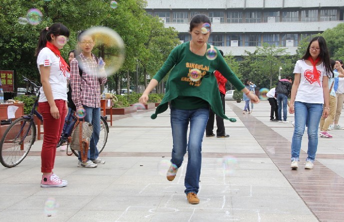 活動負責人張曉強告訴記者,明天就是六一兒童節了,在學校組織這樣一個致童年的活動,是為了讓大學生回味小時候的游戲。俗話說:童年總會過去,但是這些快樂會伴隨一生。