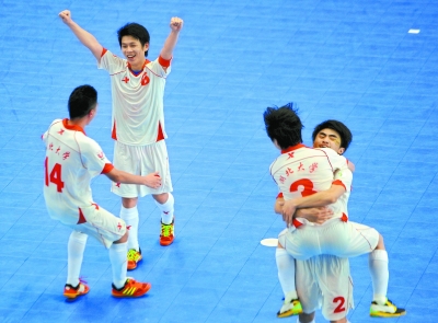今天,2012—2013賽季特步中國大學(xué)生五人制足球聯(lián)賽(簡稱大五聯(lián)賽)南大區(qū)比賽在湖南師范大學(xué)體育館結(jié)束。湖北大學(xué)隊在決賽中以3比2戰(zhàn)勝北京體育大學(xué)隊,獲得南大區(qū)冠軍。足球拉拉隊南大區(qū)選拔賽也完美收官,湖南師范大學(xué)隊以飽滿的激情、扎實的功底、高規(guī)格的動作贏得冠軍。