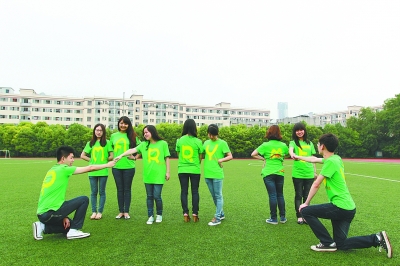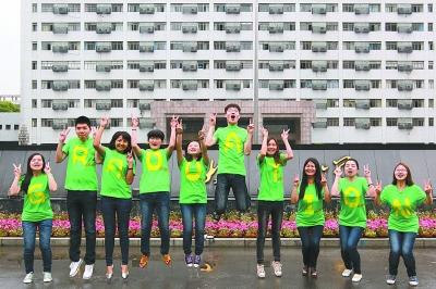 A在哪?快過(guò)來(lái)!我們拼一個(gè)Graduation(畢業(yè))!昨天,在湖北大學(xué)校園內(nèi)各個(gè)代表性建筑前,外語(yǔ)學(xué)院2009級(jí)英語(yǔ)專業(yè)的學(xué)生們,穿上字母服拍畢業(yè)照。