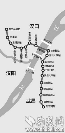 根據招標公告,7號線一期全長30.85公里,全部為地下線,其在長江以北(漢口)的路線和站點具體為:起于東方馬城站,往南經金南一路,穿過張公堤、三環線,進入江漢經濟開發區,沿張公子堤南行,在長豐停車場東北側設長豐站;線路南行穿過復興灣鐵路疏解區、發展大道高架橋,設常碼頭站;進入王家墩商務區,在王家墩商務區分別設王家墩中心站及王家墩東站;線路沿建設大道一直前行,分別設新華路站及香港路站;出香港路站后,穿過長航總醫院地塊,拐向澳門路,在京漢大道前設三陽路站。