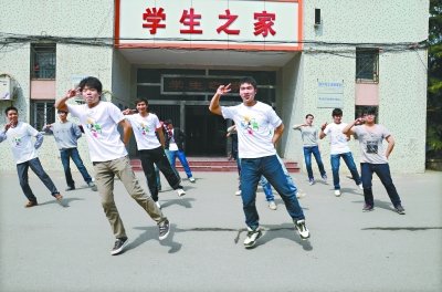 3月7日中午11點30分,一群下課回宿舍的男生隨著突然響起的音樂聲集中起來,不顧他人驚訝的眼光,跳完一段2分鐘舞蹈,然后齊喊口號最后快速散開。