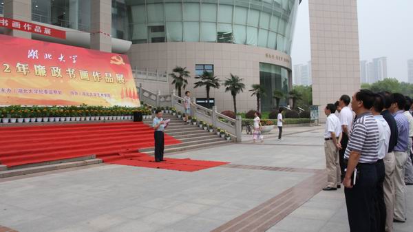 長江網(wǎng)6月15日訊 6月14日下午,湖北大學(xué)2012年廉政書畫作品展在該校求索廣場開幕。全體校領(lǐng)導(dǎo)、校內(nèi)各單位主要負責(zé)人、學(xué)生代表參加開幕式。省高校紀工委副書記、省教育廳紀檢組副組長、監(jiān)察室主任王洪波應(yīng)邀參加了開幕式并與師生一同參觀了書畫展。