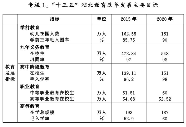 湖北省教育事業(yè)發(fā)展“十三五”規(guī)劃