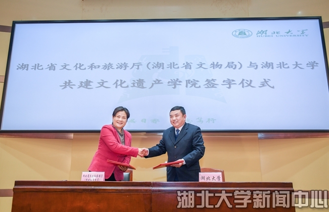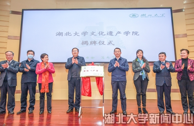 會議現場,湖北省人民政府副省長張文兵與中國考古學會理事長、中國社會科學院學部委員王巍共同為湖北大學文化遺產學院揭牌。湖北省文化和旅游廳黨組書記、廳長雷文潔與湖北大學校長劉建平代表雙方簽訂共建文化遺產學院協議。湖北大學黨委書記謝紅星主持揭牌儀式。湖北大學副校長蔣濤宣讀《關于成立湖北大學文化遺產學院等機構的通知》。據悉,文化遺產學院設在湖北大學歷史文化學院,共建雙方將建立聯席會議制度,協商學院建設發展、學科建設、人才培養、科研攻關等重大事項;文化遺產學院將成立江漢文明考古研究中心,建設文博專業,建立教學實習基地及科研合作基地,開展國家、湖北省文物保護領域科研項目、國際國內學術交流;成立湖北省文博人才教育中心,根據全省文物事業發展需要,開展文博專業本科、研究生定向培養,開設在職研究生進修課程,開展全省文物干部業務輪訓、社會文物從業人員專業技術、文博行業從業再教育等培訓工作;引入一批學科帶頭人、青年科研骨干,組建申請考古發掘團體領隊資質、文物保護工程從業資質單位。