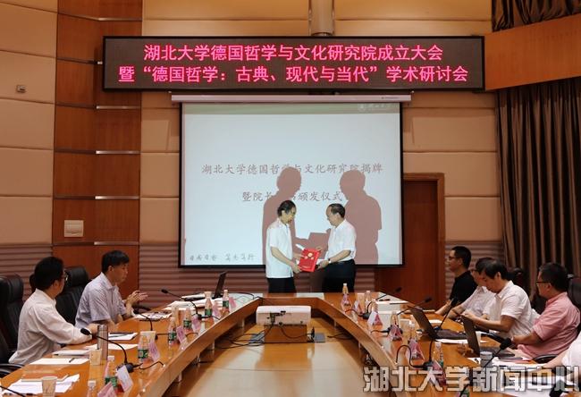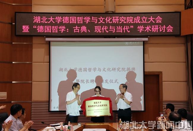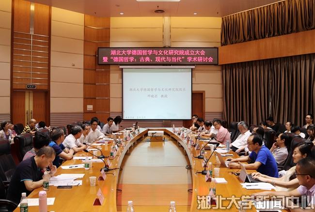 6月29日,湖北大學德國哲學與文化研究院成立大會暨德國哲學:古典、現代與當代學術研討會在校舉行。來自清華大學、中國人民大學、四川大學、山東大學、武漢大學、華中科技大學、湖北大學等高校的專家學者匯聚一堂,圍繞德國哲學展開交流研討。湖北大學校長謝紅星,著名哲學家鄧曉芒教授,科學技術發展研究院、哲學學院、高等人文研究院相關負責人和師生代表等出席成立大會。高等人文研究院院長江暢教授主持大會。