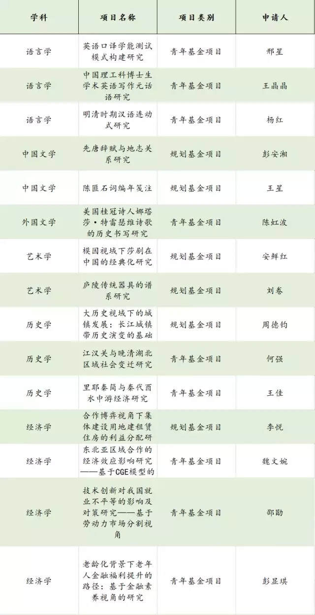 3月15日,教育部正式公布了2019年度教育部人文社會科學研究一般項目評審結果。湖北大學有26項獲批立項,排位全國高校第13位、湖北高校第3位,實現了湖北大學在該項目的歷史性突破。其中,獲批規劃基金項目8項,青年基金項目17項,高校示范馬克思主義學院和優秀教學科研建設團隊項目 1項。