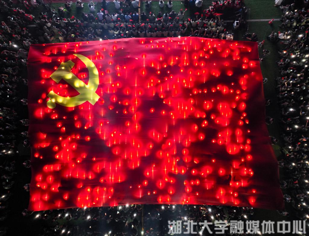 課程尾聲,一面巨幅黨旗在觀眾中傳遞,星星點點的手機燈光照亮黨旗,“請黨放心,強國有我”的錚錚誓言在現(xiàn)場回蕩。